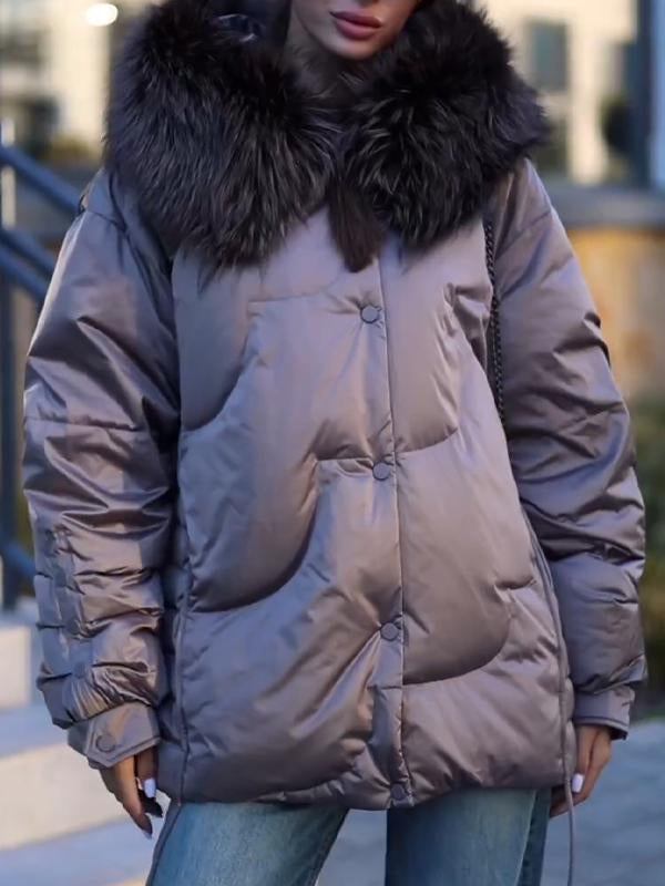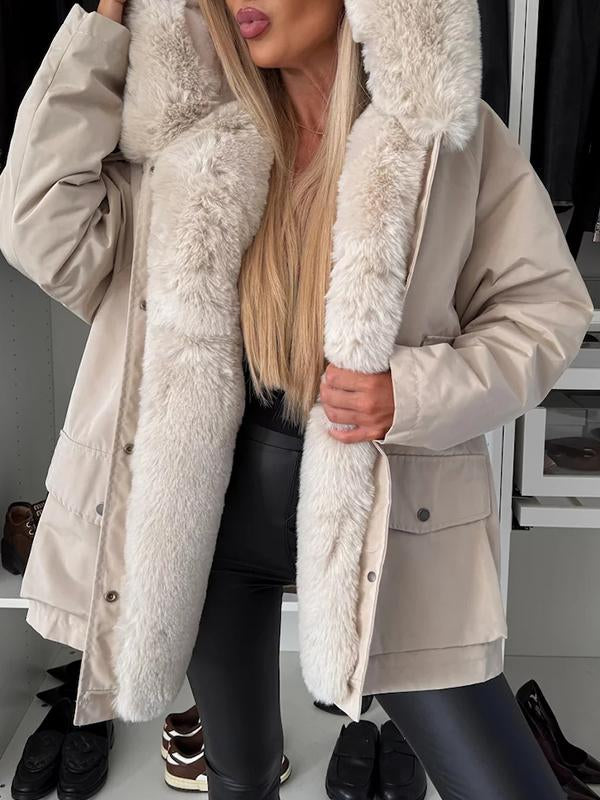 Cappotto casual in cotone con maniche lunghe in pelliccia con cappuccio da donna