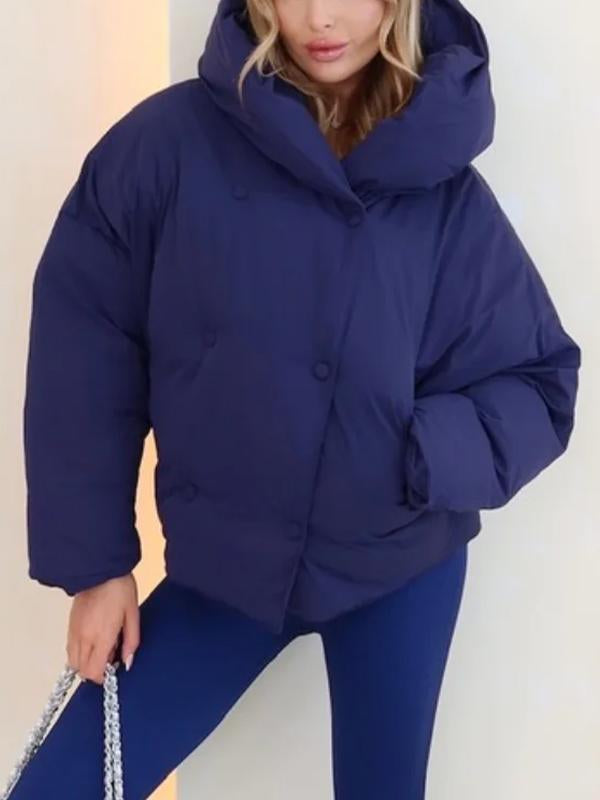 Cappotto da donna in cotone a maniche lunghe con cappuccio tinta unita casual