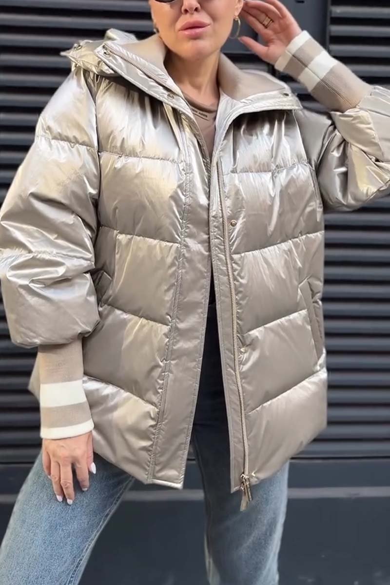 Cappotto corto casual in cotone lucido da donna