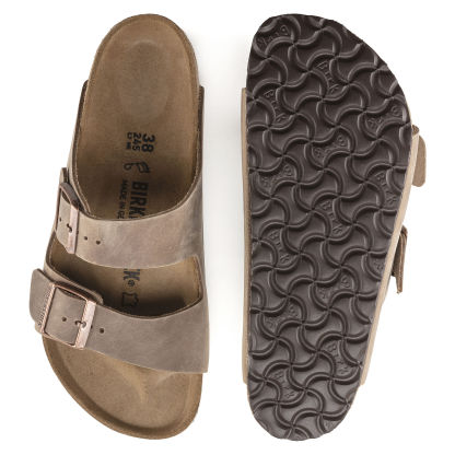 The BIRKENSTOCK Arizona is a genuine classic. This individually adjustable unisex two- strap sandal is now available in a casual version in oiled nubuck leather. The soft leather features an open selvage finish, emphasizing the handcrafted and natural look of these stylish sandals.