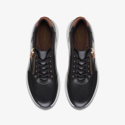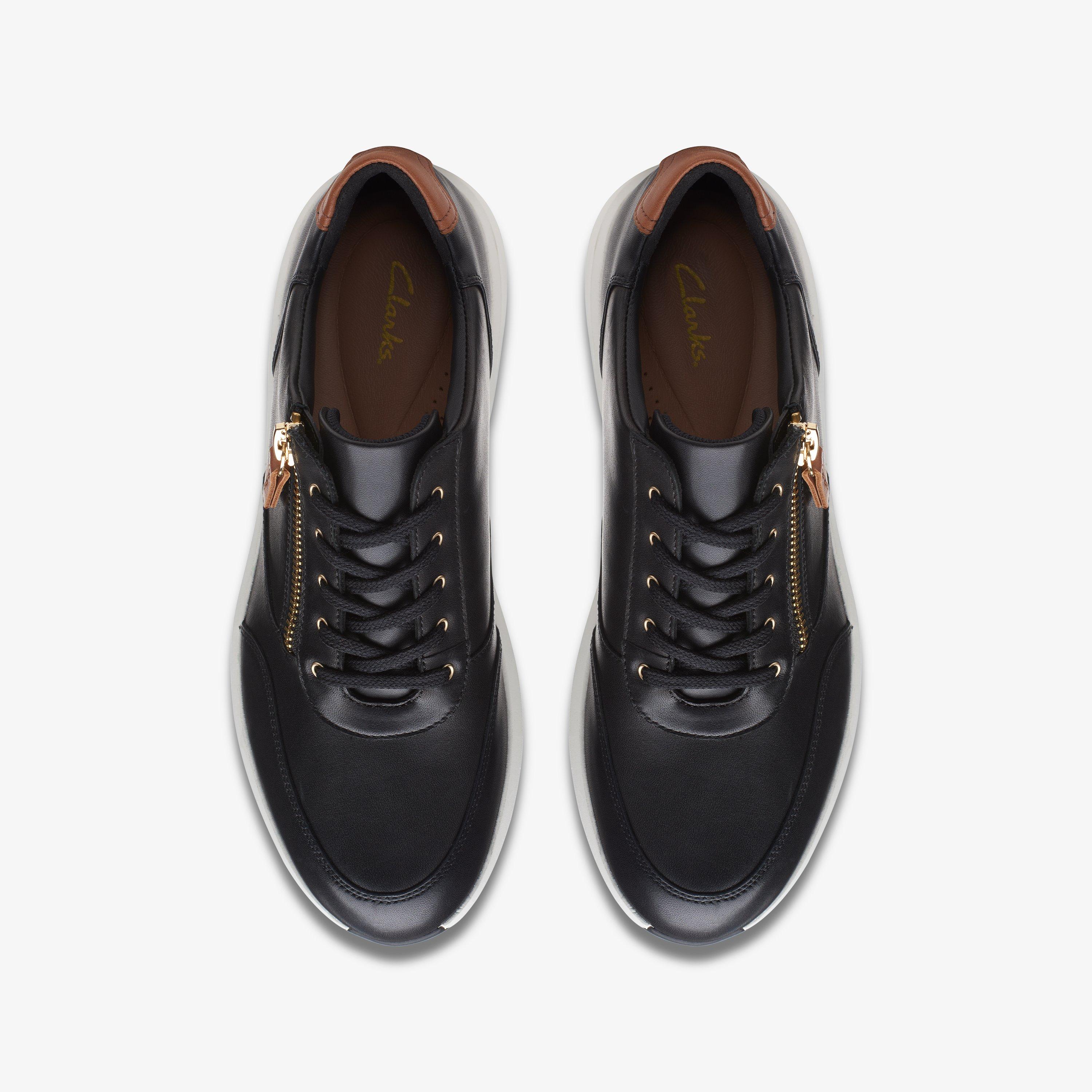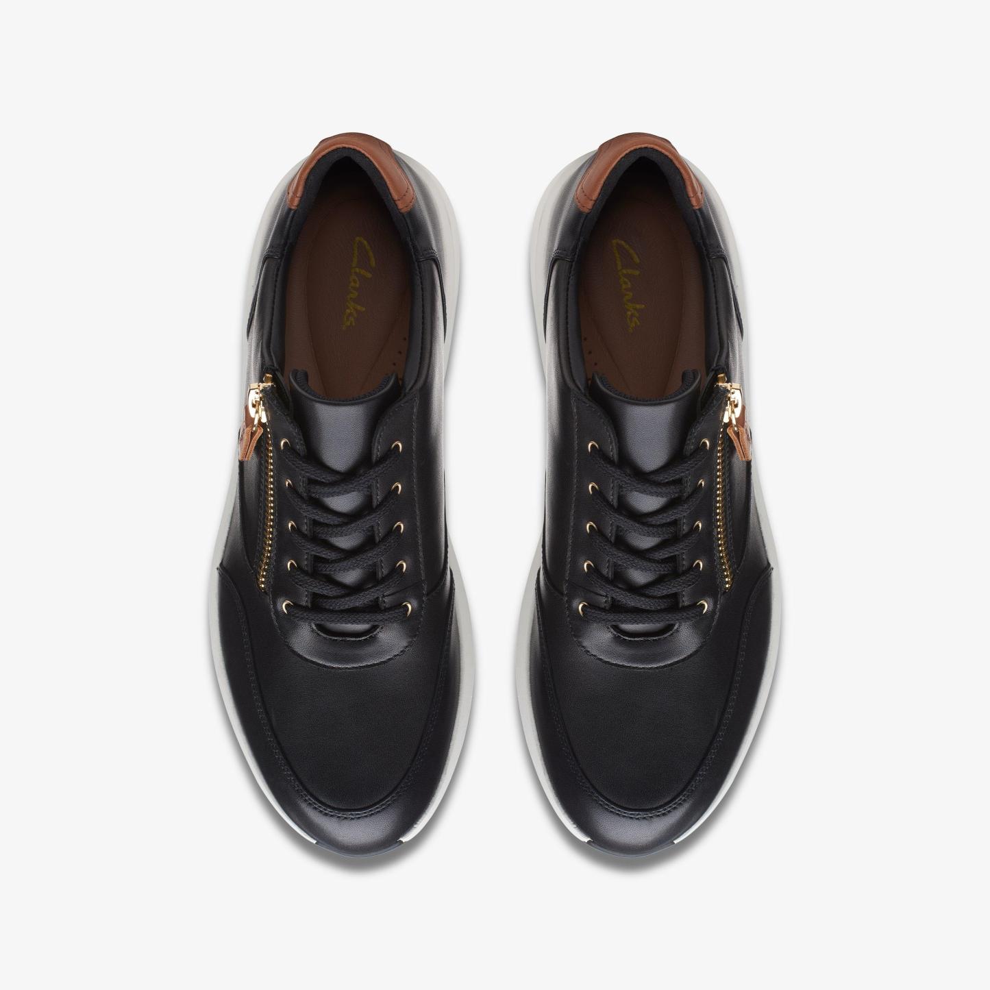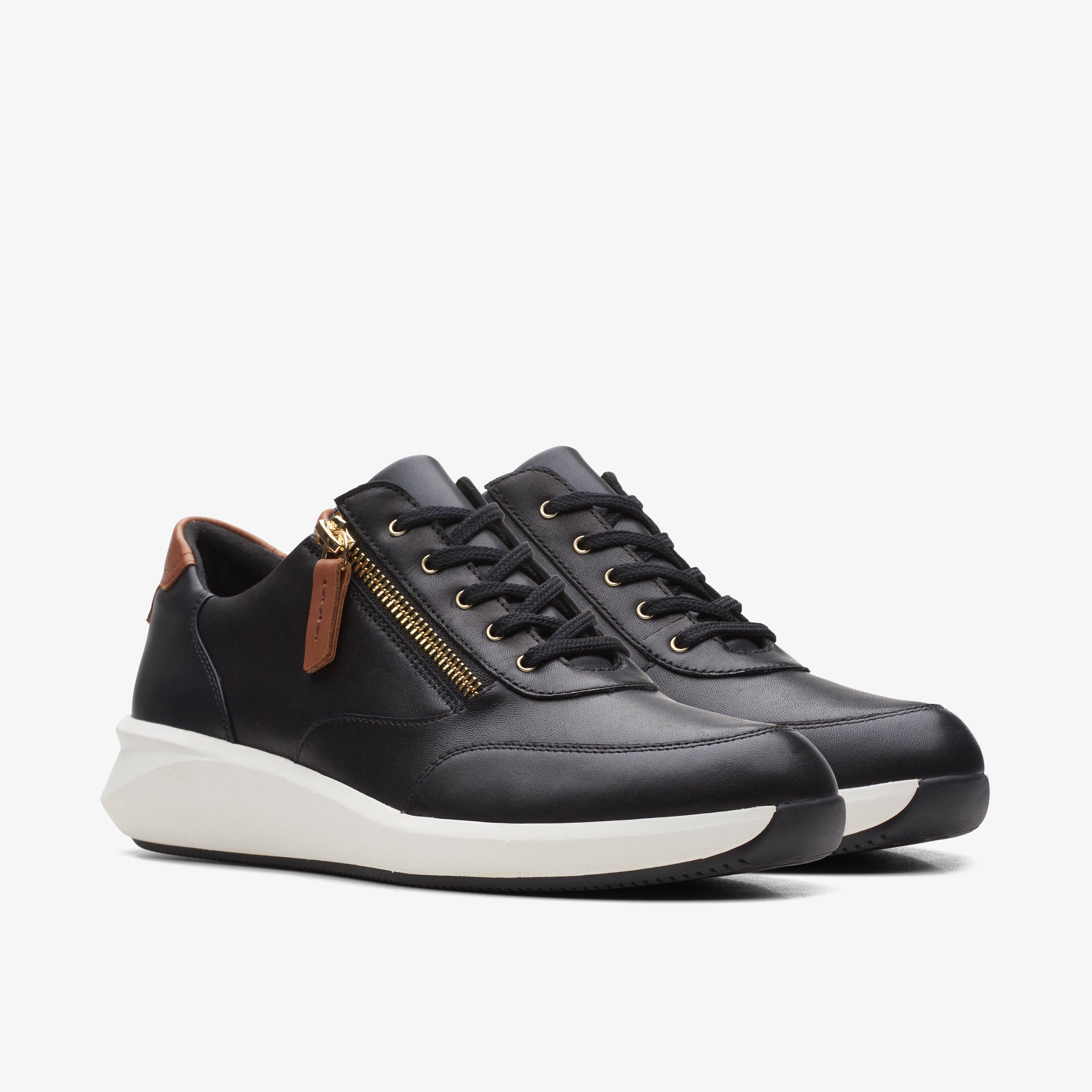 When the motive is movement. our Un Rio Zip shoe is the sporty sole you can count on. With sleek black leather uppers for a premium feel. our signature underfoot cushioning offers day-long comfort. while an airy sole keeps steps light and free. Keeping feet fresh. its breathable lining scores points for the barefoot wearers and a handy side zip makes it a breeze to pop on and off.