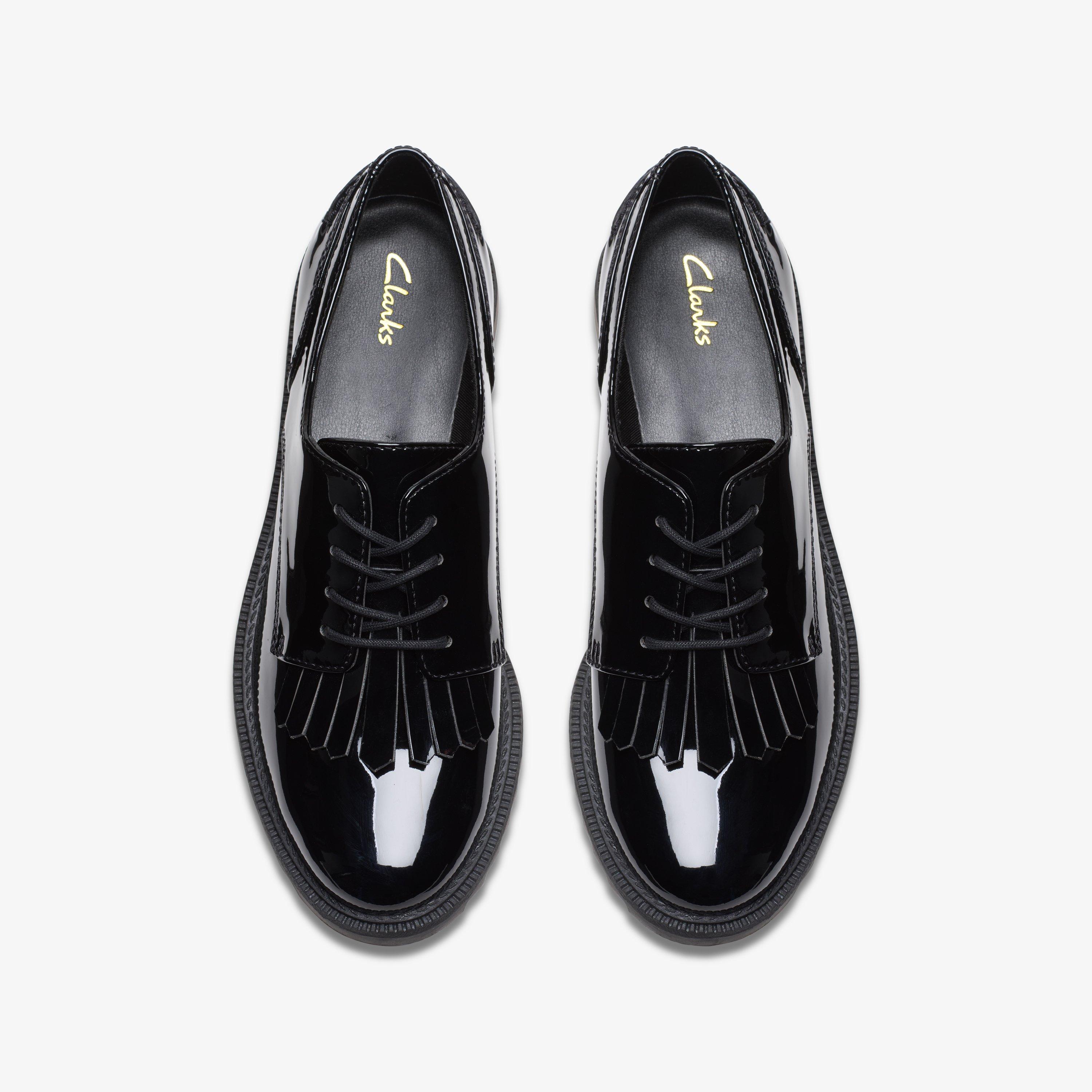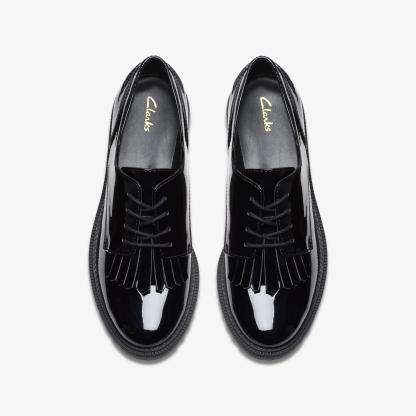 Crafted with patent leather-look uppers. women's shoes Griffin Mabel feature a contemporary twist on the popular Derby silhouette. With on-trend fringe detail. this style is teamed with a razor tooth sole and contrast stitching. Plus with our Cushion Soft�?foam layers. it keeps feet feeling super comfy all-day long.