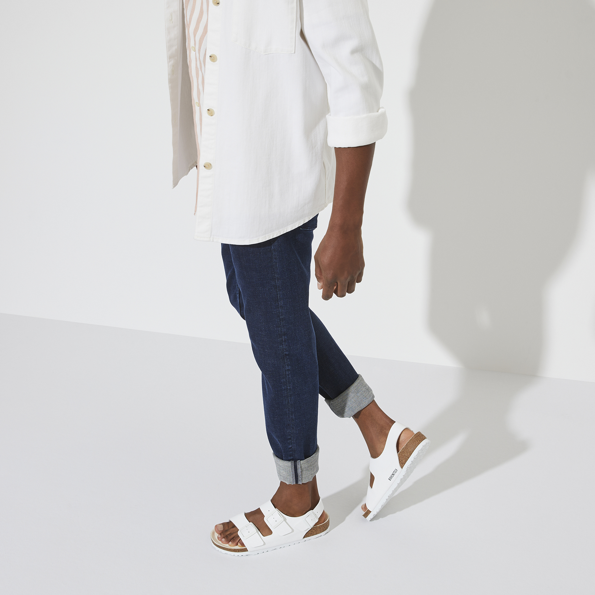 Der BIRKENSTOCK Milano garantiert maximalen Halt und verleiht den Füßen Stabilität bei sämtlichen Bewegungen. Dafür sorgen das etwas kompakter gestaltete Oberteil mit seinen zwei Riemen sowie der breite Fersenriemen. Die farblich abgestimmten Details runden das raffinierte Erscheinungsbild des Schuhs ab. Das Obermaterial besteht aus dem hautfreundlichen und strapazierfähigen Synthetikmaterial Birko-Flor®.