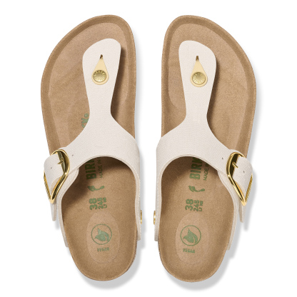 Der BIRKENSTOCK Gizeh ist ein echter Klassiker, der optimalen Halt mit einem minimalistischen, modischen Design vereint. Diese Variante zeigt sich mit unserer beliebten Big Buckle. Die Sandale wurde mit einem Material-Update versehen und ist ab sofort in einer veganen Version erhältlich. Sie ist komplett frei von tierischen Bestandteilen, was unabhängige Prüflabore kontrollieren. Das Obermaterial besteht aus anschmiegsamem Textil.