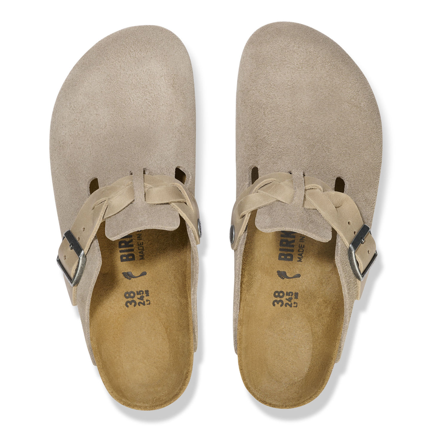The BIRKENSTOCK Boston is a veritable classic that can easily be worn all year round. The Boston has a legendary status thanks to its sophisticated, individually adjustable design. Here, the model comes with a special detail: the straps have a braided pattern, making them the perfect match for fashionable boho styles. The upper is made from especially soft suede which hugs the foot like a second skin.