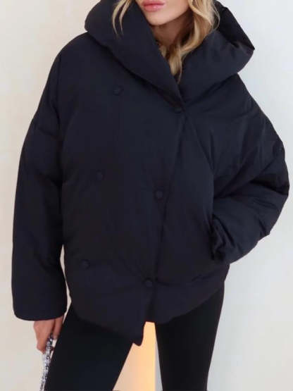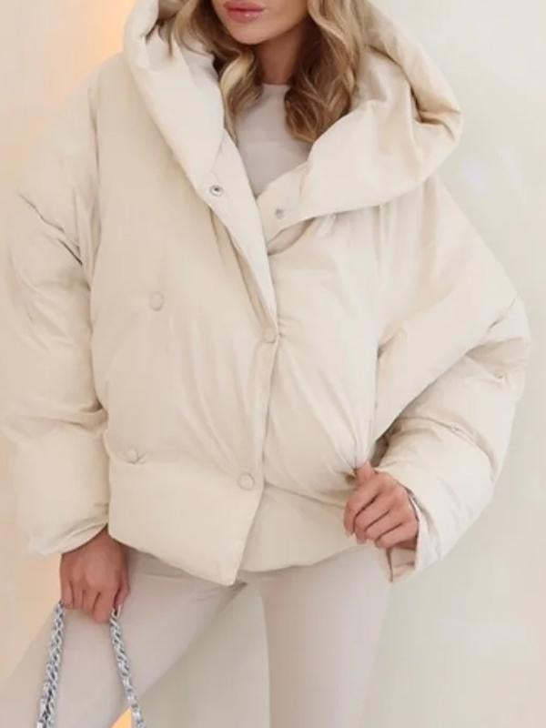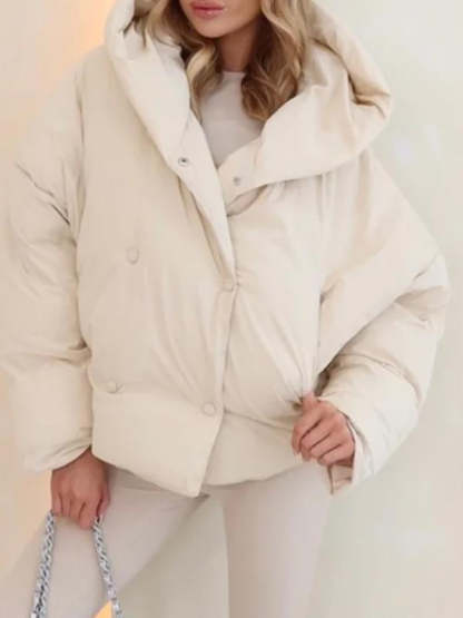Cappotto da donna in cotone a maniche lunghe con cappuccio tinta unita casual