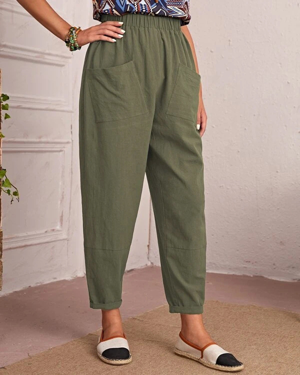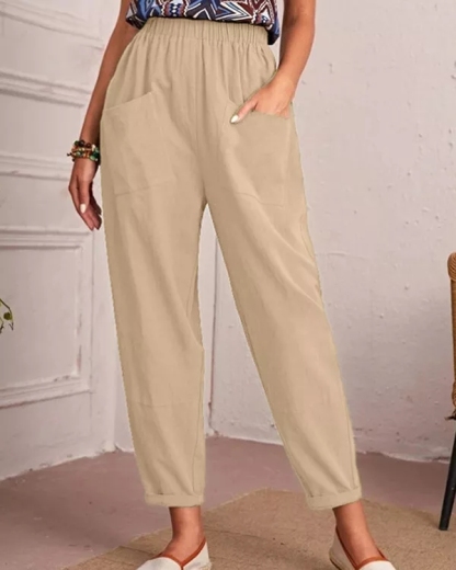 Pantaloni con tasche casual elasticizzati in lino