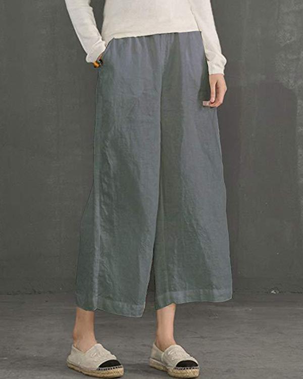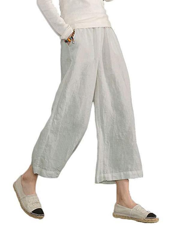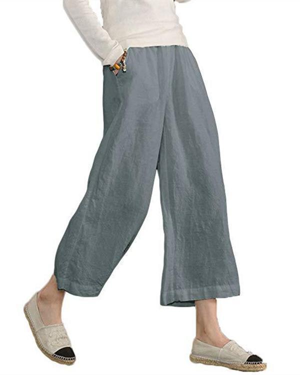 Pantaloni da donna in lino casual tinta unita Havana Nights